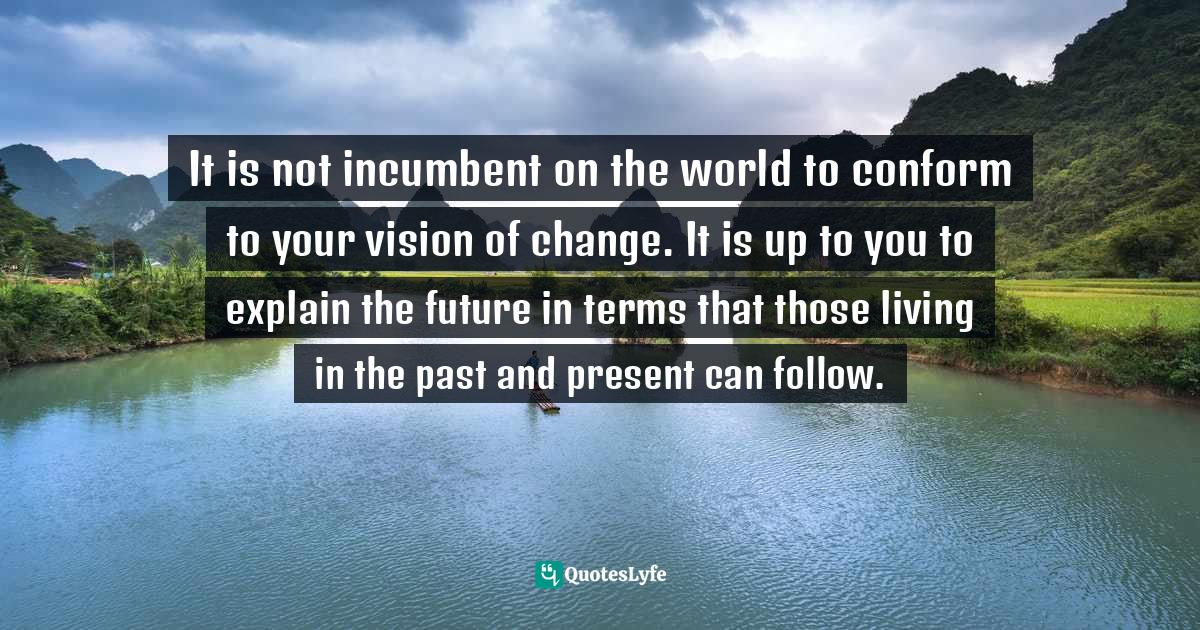 It is not incumbent on the world to conform to your vision of change. It is up to you to explain the future in terms that those living in the past and present can follow.