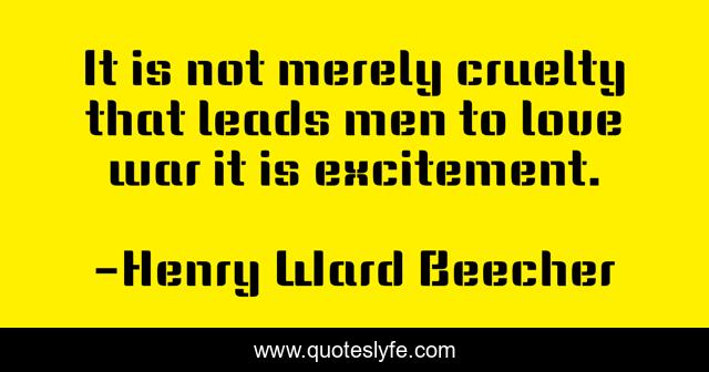 This page presents the quote "It is not merely cruelty that leads men to love war it is excitement.". Author of this quote is Henry Ward Beecher. This quote is about boring, days,.