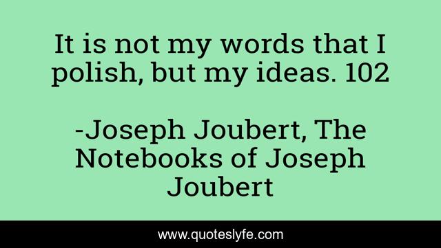 This page presents the quote "It is not my words that I polish, but my ideas. 102". Author of this quote is Joseph Joubert, The Notebooks of Joseph Joubert. .