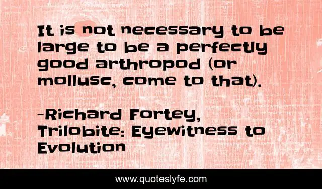 This page presents the quote "It is not necessary to be large to be a perfectly good arthropod (or mollusc, come to that).". Author of this quote is Richard Fortey, Trilobite: Eyewitness to Evolution. This quote is about science, confidence, motivational, optimistic, positive,.