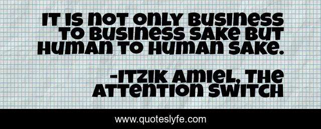 This page presents the quote "It is not only business to business sake but human to human sake.". Author of this quote is Itzik Amiel, The Attention Switch. This quote is about relationships, inspiring, networking, h2h, human, connection-with-people,.
