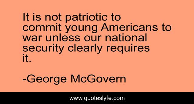 This page presents the quote "It is not patriotic to commit young Americans to war unless our national security clearly requires it.". Author of this quote is George McGovern. This quote is about security, young,.