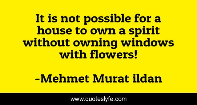 This page presents the quote "It is not possible for a house to own a spirit without owning windows with flowers!". Author of this quote is Mehmet Murat ildan. This quote is about ildan-words, mehmet-murat-ildan, ildan-wise-sayings, turkish, ildan-wisdom, house, turkish-playwrights, turkish-wisdom-words, windows,.
