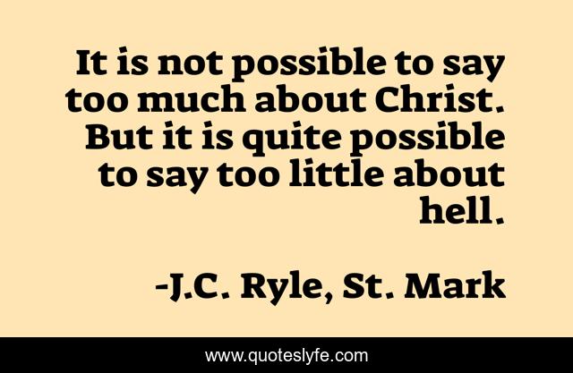 This page presents the quote "It is not possible to say too much about Christ. But it is quite possible to say too little about hell.". Author of this quote is J.C. Ryle, St. Mark. This quote is about hell, christ, christianity,.
