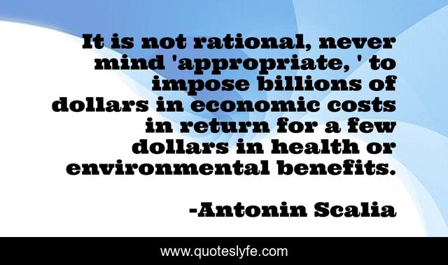This page presents the quote "It is not rational, never mind 'appropriate, ' to impose billions of dollars in economic costs in return for a few dollars in health or environmental benefits.". Author of this quote is Antonin Scalia. This quote is about environmental, mind,.