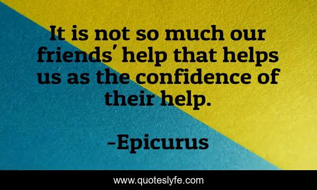 This page presents the quote "It is not so much our friends' help that helps us as the confidence of their help.". Author of this quote is Epicurus. .