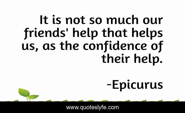 This page presents the quote "It is not so much our friends' help that helps us, as the confidence of their help.". Author of this quote is Epicurus. This quote is about confidence, friends, help,.