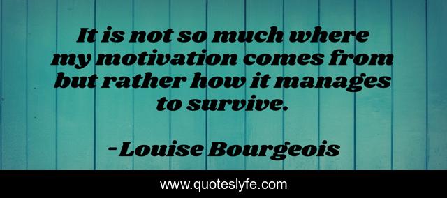 This page presents the quote "It is not so much where my motivation comes from but rather how it manages to survive.". Author of this quote is Louise Bourgeois. .