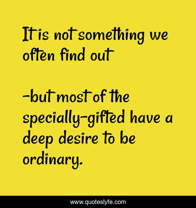 Check all other quotes by but most of the specially-gifted have a deep desire to be ordinary.