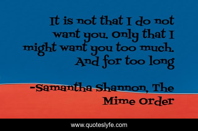 This page presents the quote "It is not that I do not want you. Only that I might want you too much. And for too long". Author of this quote is Samantha Shannon, The Mime Order. This quote is about the-mine-order, warden, arcturus-mesarthim,.