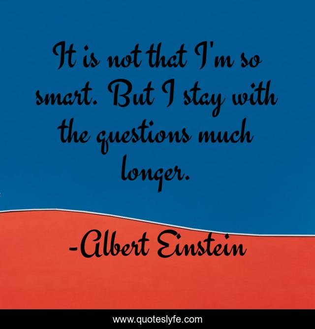 This page presents the quote "It is not that I'm so smart. But I stay with the questions much longer.". Author of this quote is Albert Einstein. This quote is about intelligence, learning, wisdom,.