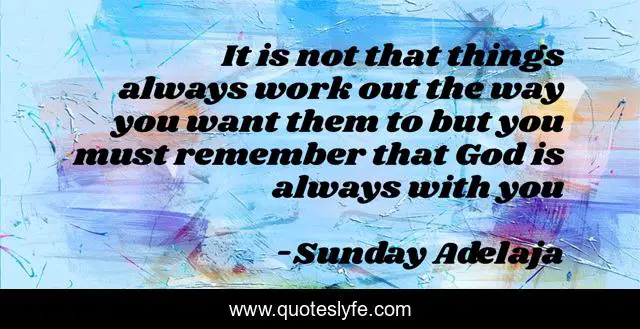 This page presents the quote "It is not that things always work out the way you want them to but you must remember that God is always with you". Author of this quote is Sunday Adelaja. This quote is about life, calling, purpose, goals, fulfillment,.