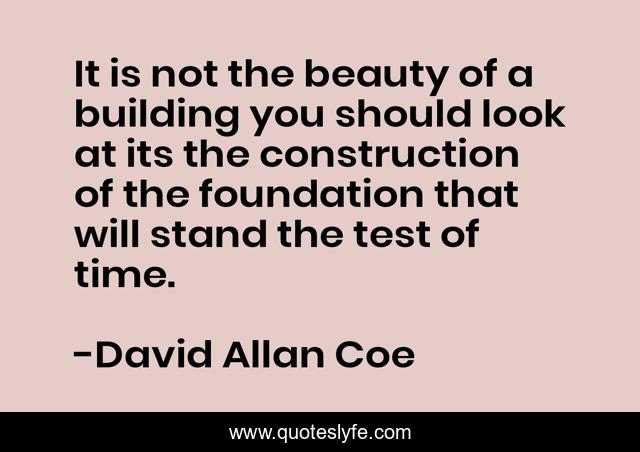 This page presents the quote "It is not the beauty of a building you should look at its the construction of the foundation that will stand the test of time.". Author of this quote is David Allan Coe. This quote is about construction, beauty, time,.