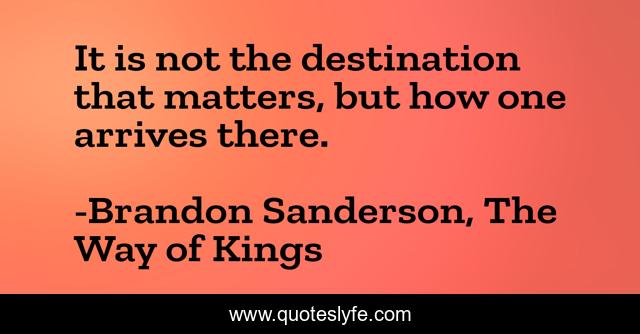 This page presents the quote "It is not the destination that matters, but how one arrives there.". Author of this quote is Brandon Sanderson, The Way of Kings. This quote is about fantasy, the-way-of-kings,.