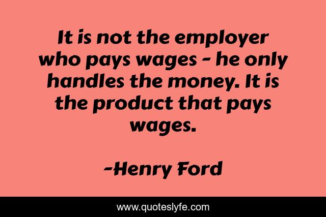 This page presents the quote "It is not the employer who pays wages - he only handles the money. It is the product that pays wages.". Author of this quote is Henry Ford. .