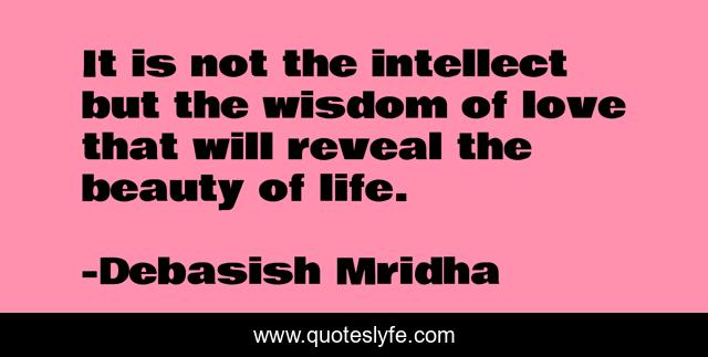 This page presents the quote "It is not the intellect but the wisdom of love that will reveal the beauty of life.". Author of this quote is Debasish Mridha. This quote is about debasish, love, mridha, philosophy, debasish-mridha, wisdom, beauty-of-life, intellect, affection,.