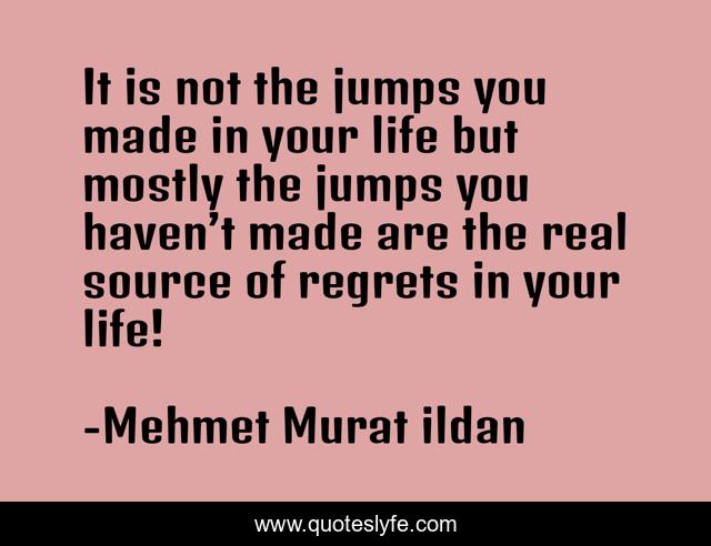 This page presents the quote "It is not the jumps you made in your life but mostly the jumps you haven’t made are the real source of regrets in your life!". Author of this quote is Mehmet Murat ildan. This quote is about regret, sources, jumps, murat-ildan, jump, source, turkish-literature, regrets,.