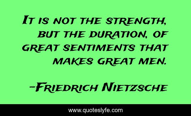 This page presents the quote "It is not the strength, but the duration, of great sentiments that makes great men.". Author of this quote is Friedrich Nietzsche. .