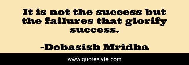 This page presents the quote "It is not the success but the failures that glorify success.". Author of this quote is Debasish Mridha. This quote is about philosophy, success, mridha, debasish, debasish-mridha, failure, glorify-success,.