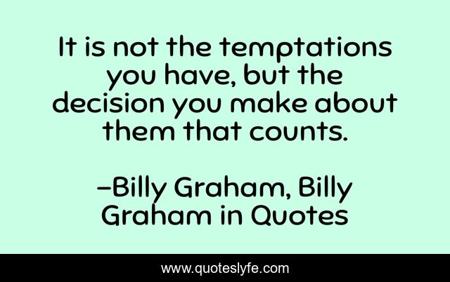 This page presents the quote "It is not the temptations you have, but the decision you make about them that counts.". Author of this quote is Billy Graham, Billy Graham in Quotes. This quote is about billy-graham, temptation,.