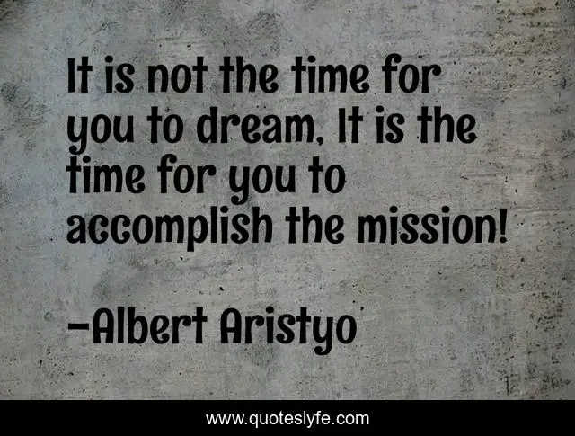 This page presents the quote "It is not the time for you to dream, It is the time for you to accomplish the mission!". Author of this quote is Albert Aristyo. This quote is about time-management, mission, dreams, time,.