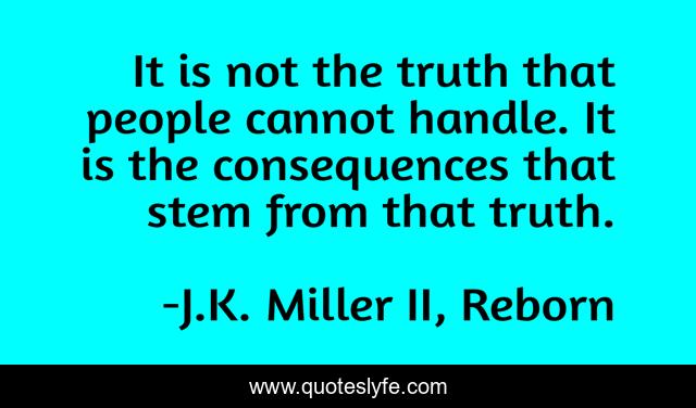 This page presents the quote "It is not the truth that people cannot handle. It is the consequences that stem from that truth.". Author of this quote is J.K. Miller II, Reborn. .