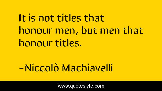 "Niccolò Machiavelli Quotes." Quoteslyfe.com, 2025. Fri. 05 Dec. 2025. <https://www.quoteslyfe.com/quote/It-is-not-titles-that-honour-men-127336>.