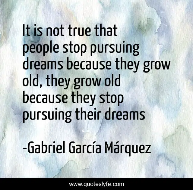 This page presents the quote "It is not true that people stop pursuing dreams because they grow old, they grow old because they stop pursuing their dreams". Author of this quote is Gabriel García Márquez. This quote is about enthusiasm, rest-in-peace, inspirational,.