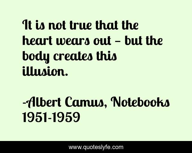 This page presents the quote "It is not true that the heart wears out — but the body creates this illusion.". Author of this quote is Albert Camus, Notebooks 1951-1959. This quote is about heart, love, illusion, affection,.