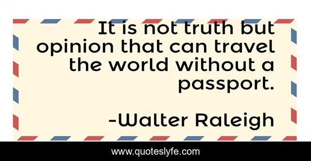 This page presents the quote "It is not truth but opinion that can travel the world without a passport.". Author of this quote is Walter Raleigh. .