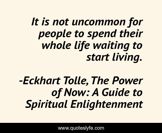 This page presents the quote "It is not uncommon for people to spend their whole life waiting to start living.". Author of this quote is Eckhart Tolle, The Power of Now: A Guide to Spiritual Enlightenment. This quote is about enthusiasm, spiritual, inspirational,.