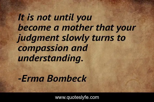 This page presents the quote "It is not until you become a mother that your judgment slowly turns to compassion and understanding.". Author of this quote is Erma Bombeck. .