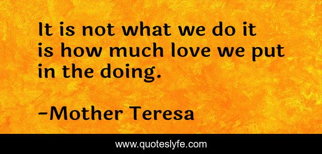 This page presents the quote "It is not what we do it is how much love we put in the doing.". Author of this quote is Mother Teresa. .