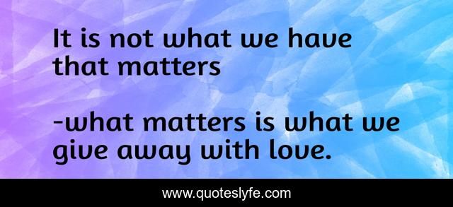 "what matters is what we give away with love. Quotes." Quoteslyfe.com, 2025. Fri. 05 Dec. 2025. <https://www.quoteslyfe.com/quote/It-is-not-what-we-have-that-8363>.