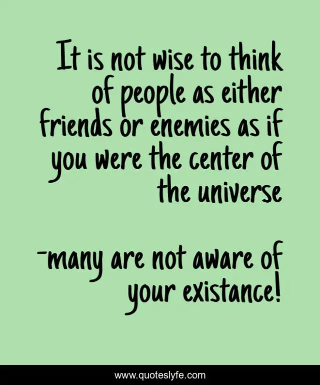 This page presents the quote "It is not wise to think of people as either friends or enemies as if you were the center of the universe". Author of this quote is many are not aware of your existance!. .