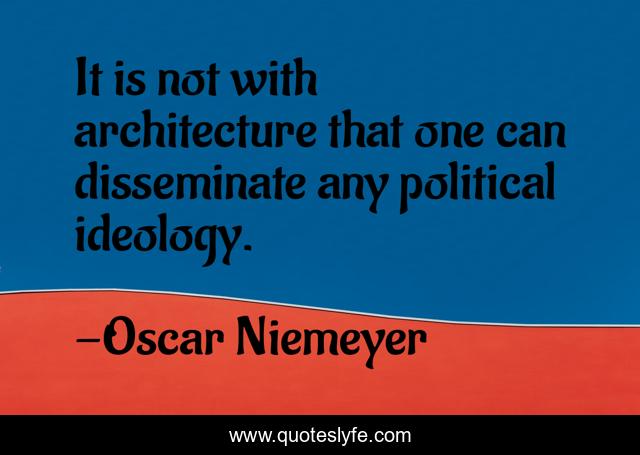 This page presents the quote "It is not with architecture that one can disseminate any political ideology.". Author of this quote is Oscar Niemeyer. This quote is about ideology, political,.