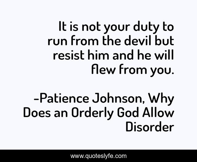 "Patience Johnson, Why Does an Orderly God Allow Disorder Quotes." Quoteslyfe.com, 2025. Sat. 06 Dec. 2025. <https://www.quoteslyfe.com/quote/It-is-not-your-duty-to-run-45932>.