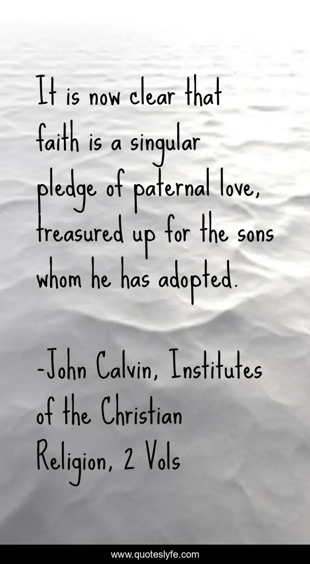 This page presents the quote "It is now clear that faith is a singular pledge of paternal love, treasured up for the sons whom he has adopted.". Author of this quote is John Calvin, Institutes of the Christian Religion, 2 Vols. This quote is about faith, love, adoption, paternal-love, affection, election,.
