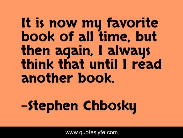 This page presents the quote "It is now my favorite book of all time, but then again, I always think that until I read another book.". Author of this quote is Stephen Chbosky. This quote is about young-adult-contemporary, wallflower, young-adult, stephen-chbosky, young-adult-fiction, the-perks-of-being-a-wallflower,.