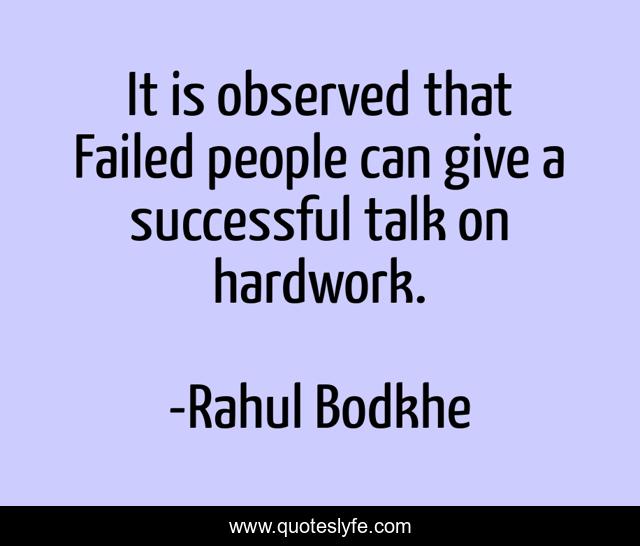 This page presents the quote "It is observed that Failed people can give a successful talk on hardwork.". Author of this quote is Rahul Bodkhe. This quote is about successful, inspirational-funny, humour, success, inspiration,.
