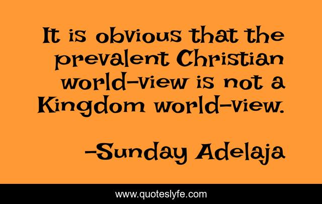 This page presents the quote "It is obvious that the prevalent Christian world-view is not a Kingdom world-view.". Author of this quote is Sunday Adelaja. This quote is about kingdom, minded, prevalent, christians,.