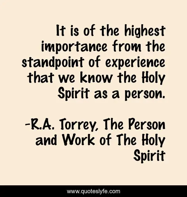 This page presents the quote "It is of the highest importance from the standpoint of experience that we know the Holy Spirit as a person.". Author of this quote is R.A. Torrey, The Person and Work of The Holy Spirit. .
