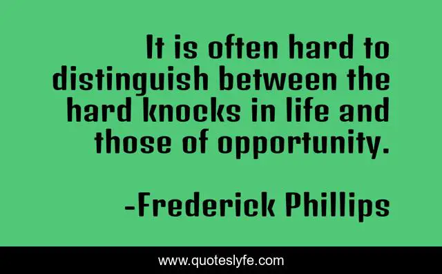This page presents the quote "It is often hard to distinguish between the hard knocks in life and those of opportunity.". Author of this quote is Frederick Phillips. .
