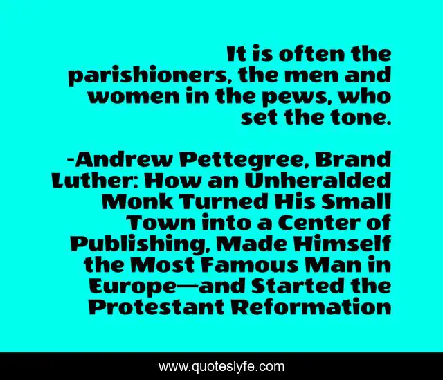 "Andrew Pettegree, Brand Luther: How an Unheralded Monk Turned His Small Town into a Center of Publishing, Made Himself the Most Famous Man in Europe—and Started the Protestant Reformation Quotes." Quoteslyfe.com, 2025. Sat. 06 Dec. 2025. <https://www.quoteslyfe.com/quote/It-is-often-the-parishioners-the-men-60317>.