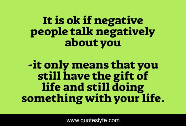"it only means that you still have the gift of life and still doing something with your life. Quotes." Quoteslyfe.com, 2025. Fri. 05 Dec. 2025. <https://www.quoteslyfe.com/quote/It-is-ok-if-negative-people-talk-171045>.