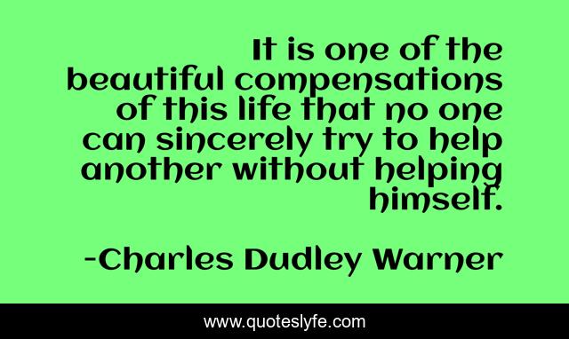 This page presents the quote "It is one of the beautiful compensations of this life that no one can sincerely try to help another without helping himself.". Author of this quote is Charles Dudley Warner. This quote is about giving, goodness,.