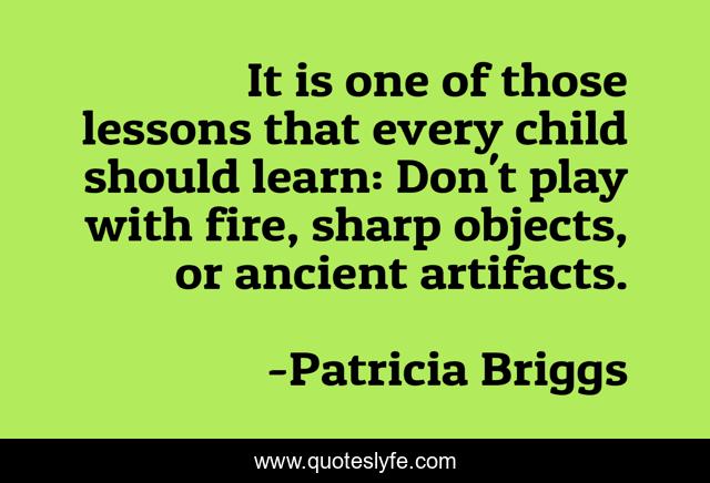 This page presents the quote "It is one of those lessons that every child should learn: Don't play with fire, sharp objects, or ancient artifacts.". Author of this quote is Patricia Briggs. This quote is about dragon-blood, humor,.