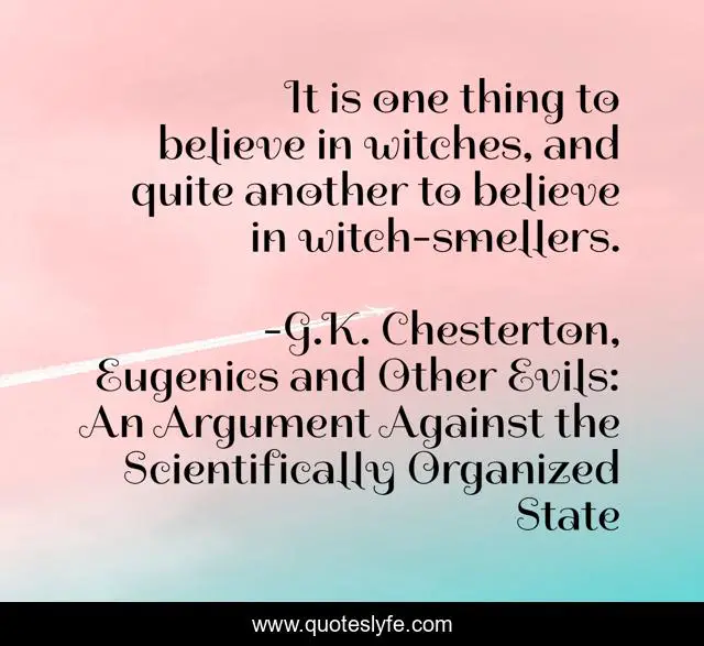 This page presents the quote "It is one thing to believe in witches, and quite another to believe in witch-smellers.". Author of this quote is G.K. Chesterton, Eugenics and Other Evils: An Argument Against the Scientifically Organized State. This quote is about politics, witch-hunts,.