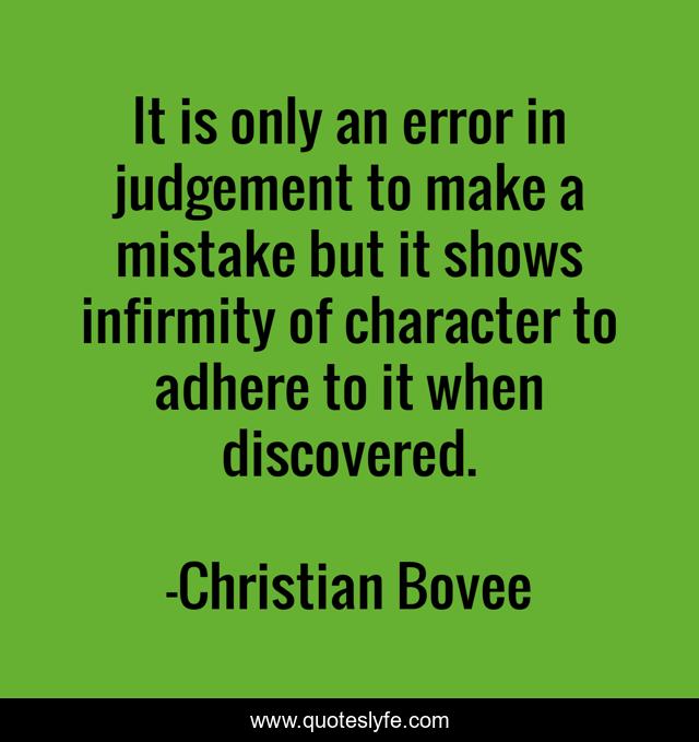 This page presents the quote "It is only an error in judgement to make a mistake but it shows infirmity of character to adhere to it when discovered.". Author of this quote is Christian Bovee. This quote is about positive, confidence, creating, change,.