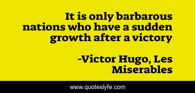 This page presents the quote "It is only barbarous nations who have a sudden growth after a victory". Author of this quote is Victor Hugo, Les Miserables. This quote is about growth, barbarous, nations,.